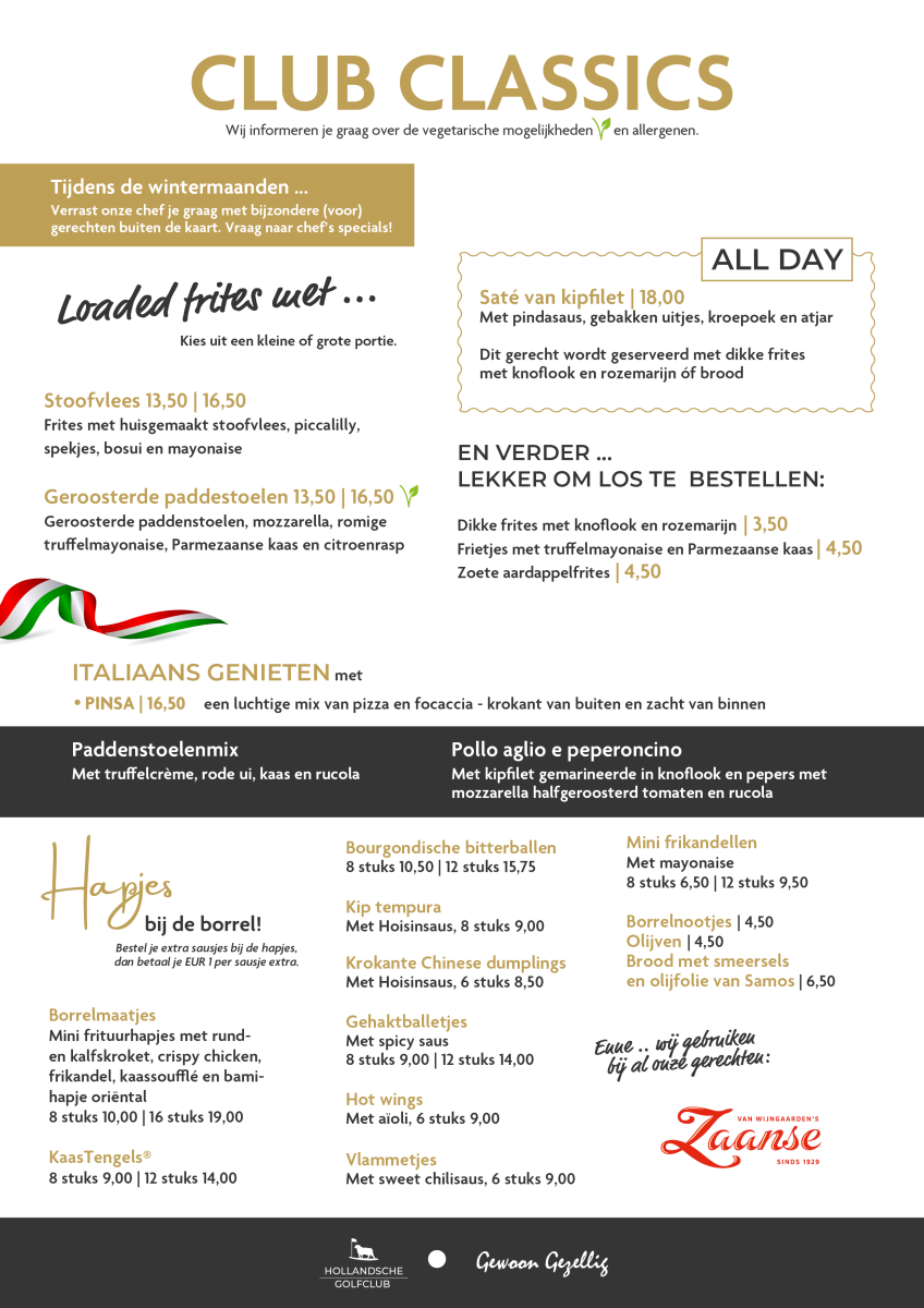 Je bent meer dan welkom!Of je nu toevallig langs fietst, komt om te golfen of om gewoon even weg te zijn van ‘de drukte van alledag’ ... in onze Brasserie kun je dagelijks genieten van heerlijke koffie, een lekker wijntje en een vers bereide maaltijd in een sfeer van ‘gewone gezelligheid’.