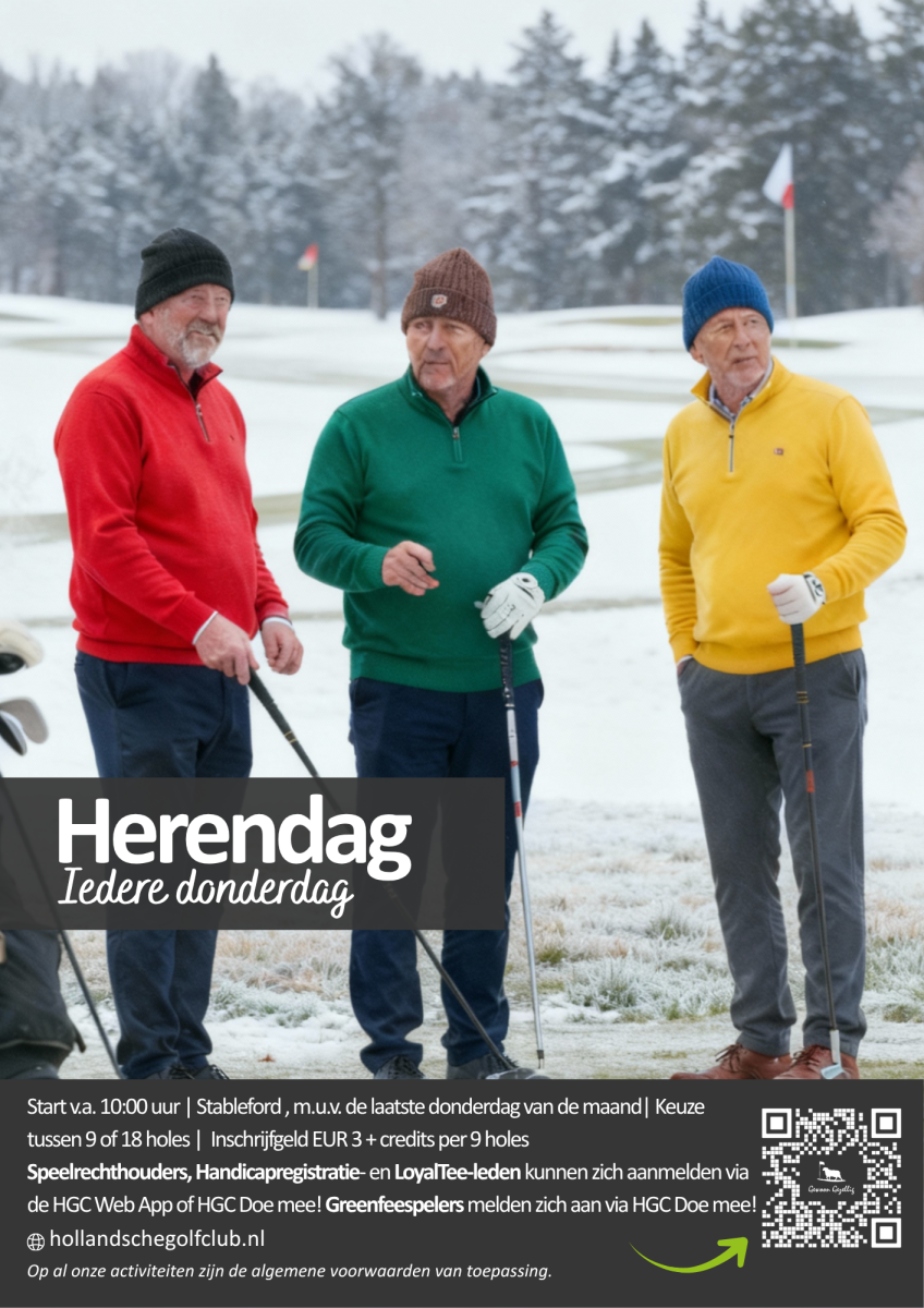 De Herendag commissie organiseert het gehele jaar wekelijks op donderdag voor alle herenleden een golfwedstrijd over 9 holes en 18 holes.